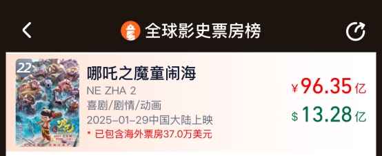 国产原创动画成为国民级文化符号。《哪吒之魔童闹海》现象级增长态势的核心驱动力在于口碑裂变与家庭观影刚需的叠加,前作积累的国民级 IP 效应在续作质量加持下形成观影惯性,而春节假期临近释放的全年龄段观影需求,另外,电影本身投射的价值观触动各个年龄层,其精良的特效和全动画行业的托举,超越电影本身,最终实现排片、票房、人次三大指标的螺旋式上升。