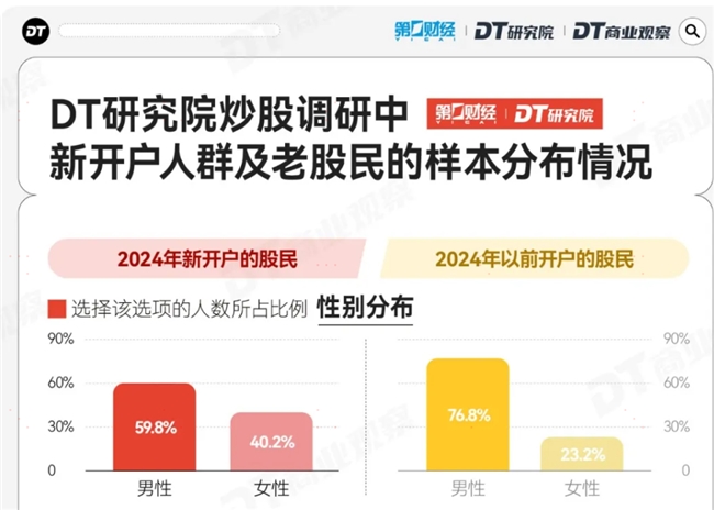 DT商业观察一份调研报告数据显示,越来越多女性加入炒股大军,2024年前女性股民比例为23.2%,2024年新股民中女性比例达到40.2%。从投资收益来看,2024年A股市场中,女性投资者的人均盈利达到22355元,相较于往年增长了近15%,这一现象无疑彰显了女性投资者的力量与潜力。