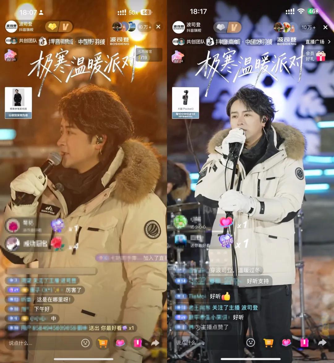 正如在「中国好羽绒」的活动期间,波司登并没有停留在参数和技术叙述,而是与抖音电商携手,举办了一场“极寒温暖派对”,把羽绒服放进了年轻人的生活场景与情绪现场,传递差异化的品牌心智。