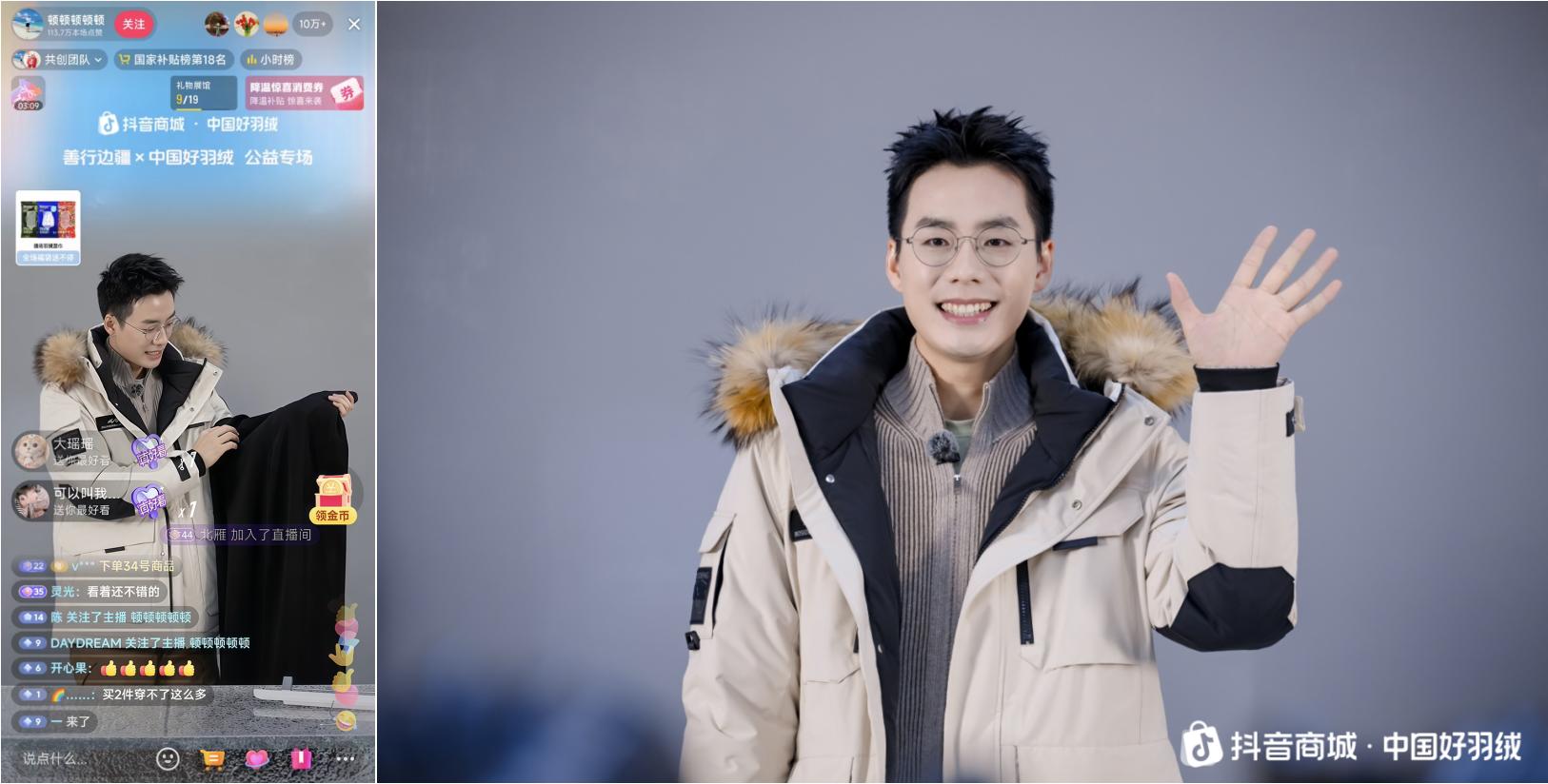 在今年的「中国好羽绒」公益行动中,抖音电商联合字节跳动公益平台共同推出“善行边疆温暖季”公益专区,并发起爱心好物公益直播,让用户能在内容场里直接看到漠河的冰雪、人文与真实需求,促使公益行动更生活化,也更具用户参与感。