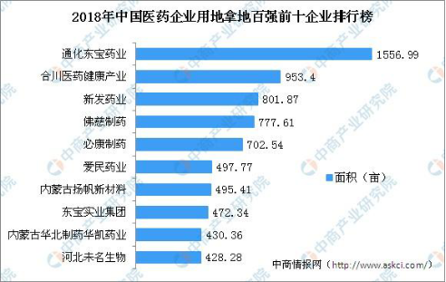 据中商产业研究院产业地产情报库监测数据显示,2018年中国医药企业用地拿地面积100强企业医药用地拿地数量共计152宗,面积达24954.1亩,缴纳土地出让金超50亿元。此次2018年中国医药企业用地拿地面积100强企业上榜门槛为129.26亩,其中必康制药拿地数量共计702.54亩,在百强排行榜中位列第五,公司实力及营业规模可见一斑。