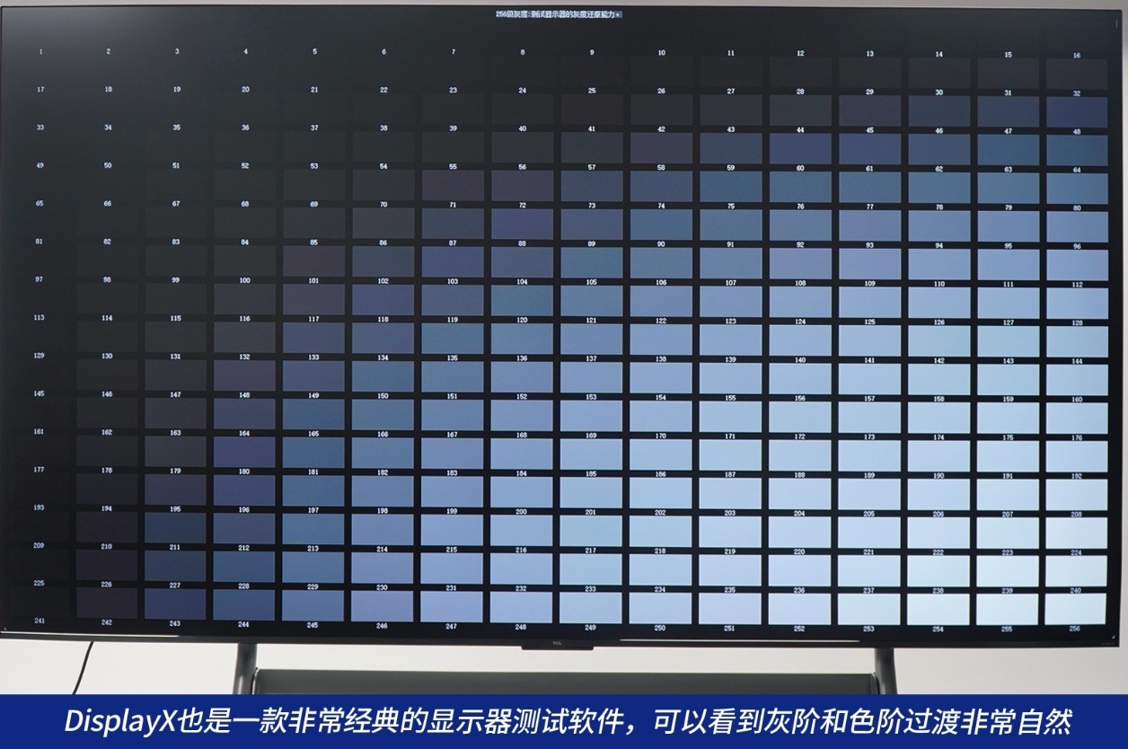 DisplayX也是一款非常经典的显示器测试软件,可以看到灰阶和色阶过渡非常自然,丝毫没有出现割裂和跳跃感,呈现接近更加完美的过渡。